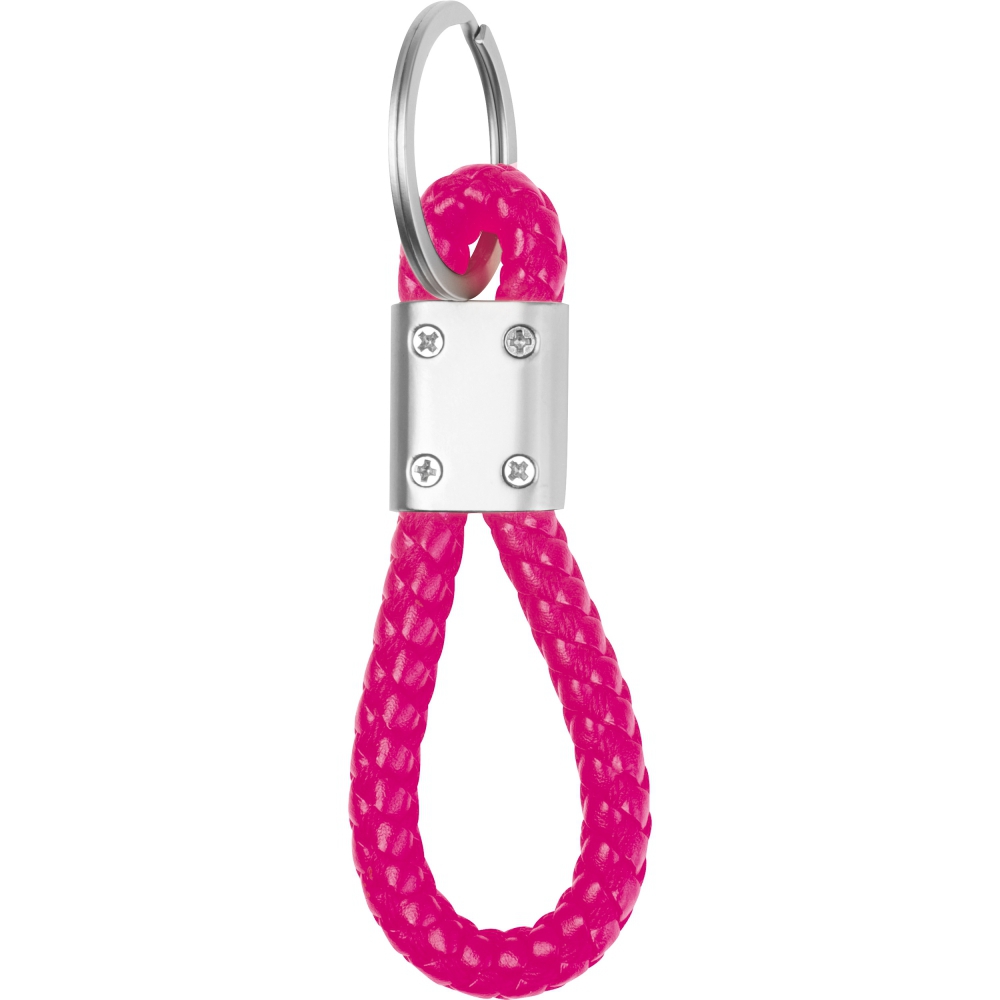 Metalowy brelok z wytrzymałym, plecionym sznurkiem z PU.